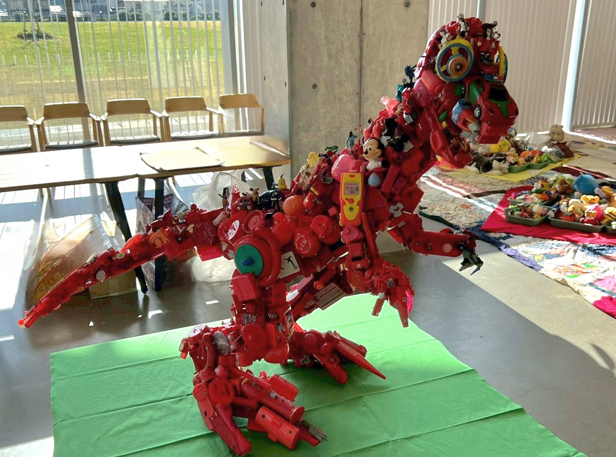 また、”かえっこ”考案者で美術家の藤浩志さんが制作した作品『トイザウルス』(不要になったプラスチック製のおもちゃを材料にしています)を1日限定で展示しました。