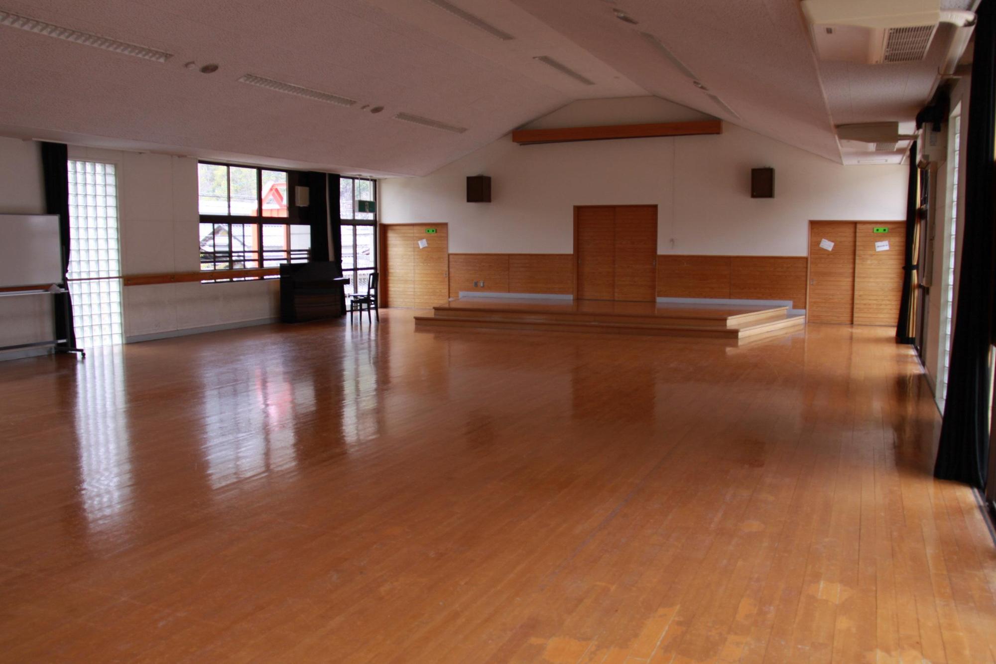 1階に移住相談室、学童クラブ室、子育て広場室(各60平方メートル)、2階に約140平方メートルの多目的ホールがあります。